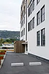 – I den gamle teglsteinsdelen mot Fløttmannsplassen ble gulvnivå senket til plassens nivå og styrker dermed kommunikasjon mellom første etasje og plassgulvet utenfor, samt sikrer universell adkomst til prosjektet. Havnepromenaden ble forlenget langs Puddefjorden og skaper sammen med sitteterrassen, badedusj og sykkelparkering en levende lun fasadefront. Bevaring av det eksisterende bygget (både stål/betong og tegl/trekonstruksjon) reduserer klimagassutslipp i sammenligning med et eventuelt nybygg. I tillegg har prosjektet gitt redusert anleggstrafikk i nærområdet, redusert støy- og støvpåvirkning for naboer, og ikke minst reduksjon i avfall fra byggeplass, sier Pfeffer.