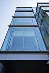 Andre byggetrinn av Glasblokkene er utformet på samme måte som første byggetrinn, med et tverrbygg og åtte tangenter ut fra dette (fire på hver side). Mellom tangentene er det hager. Kjeller er støpt vanntett. Underetasjene er i plasstøpt betong. Over bakken har bygget bærende konstruksjon av stålsøyler og hulldekker. Fasadene består av cirka 12.500 kvadratmeter glassfasader og cirka 3.300 kvadratmeter med natursteinsmurer.