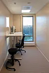 Det er 50/50 kombinasjon av cellekontorer og kontorlandskap i kontoretasjene. Byggetrinnet rommer mellom 120-140 arbeidsplasser. Leietakerne har egne spiserom.