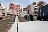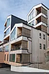 Hun sier at arkitekturen er et svar på flere utfordringer; en bratt tomt, et ønske om høy kvalitet på utearealer og fellesområder og ikke minst ønsket om å skape et nabolag heller enn en boligblokk.