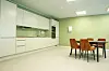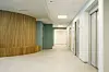 Overflater i fellesrommene er malt betong og malt gips, med belegg på gulv. I gangareal er det fliser på gulv, og en miks av gips og systemhimling i tak.