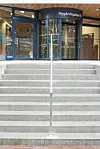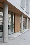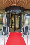 Hovedinngangen fra Nygårds-gaten har karuselldør i tillegg til vanlig dør. Det er egen inngang for sykler og varelevering litt lenger nord. Inngang fra Johannes Bruns gate ligger i tredje etasje.