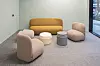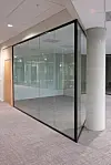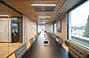 Hos Sands er det mye systemvegger med glassfronter. Bygget har store parti med eikespiler i himling i tillegg til tradisjonell systemhimling.