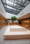– Interiøret har fått et nordisk uttrykk med tresorter som furu og ask og kompletteres av kontraster og en varm, kompleks fargepalett. Naturlige materialer har blitt prioritert. Elementer med lang levetid er bevisst gitt et mer nøytralt uttrykk, mens kraftigere farger brukes på vegger og møbler. Det er valgt kortreiste kvalitetsmøbler med lang forventet levetid, som er laget for gjenbruk, lette å rengjøre, flytte og vedlikeholde, sier Ekerhovd.