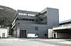 fasaden er det lyse og mørke Rockpanel fasadeplater, i kombinasjon med grå trekledning, og ein del sandwichpanel på vest- og nordsida.