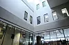 En spesiell byggedetalj er den stadstøypte trappa oppover i atriet som heng i lufta, festa i stag til taket.