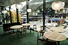 Også når det gjelder innvendige materiale er det tatt omsyn til lyd. I restauranten på gateplan er det slipt betong på golv. Elles er det for det meste teppeflis på golva i bygget. På veggane er det gips og glas, både Fermacell og vanlig gips. I taka er det Rockfon systemhimling. Det er gjort ein del lydtiltak på veggane innvendig. Ein fin detalj er veggar med trespiler i restauranten. Her er det bygd inn utståande bokhyller. Madsen fortel at tømrarar frå Åsen & Øvrelid har utførte dette finsnikkararbeidet sjølv etter teikning frå interiørarkitekt.
