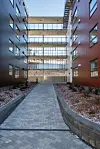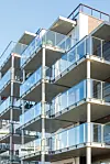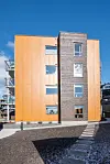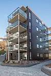 Byggene har fasader av vedlikeholdsvennlige materialer som er lette å holde rene, noe som ifølge Haugland er viktig der det er vanskelig å komme til. Tilkomst til leilighetene er både via heis og svalganger.