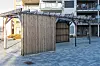 Nedenfor byggene er det nedkast av søppel i bunntømte kontainere.