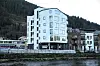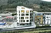 – Formen på byggene har gjort det noe spesielt å bygge. Det er knekte hjørner, slik at bygget er sekskantet, noen steder åttekantet. Vi fikk det ikke til med betongelementer og hulldekker på grunn av utformingen. Vi har stedstøpt hele bygget. Konstruksjonen er stålsøyler og plasstøpt betong. Også dekkene er plasstøpt. Vi brukte tårnkran for å få betongen oppover i bygget, forteller Østenstad om byggeprosessen. Sunnfjord Betong har levert ferdigbetong.