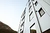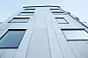 Materialene på fasaden er tofargede Cembrit-plater som gir brytning i hvitfargen. Det er også en del mørkmalt trekledning på fasaden. Ifølge Dvergsdal er Cembrit-platene konstruert slik at fargenyansene blir mer synlig etter hvert som de tar opp urenhet fra luften.