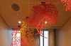 Fra lobbyen utenfor publikumsgalleriet i fylkessalens øvre nivå, leder en utvendig trappesekvens gjennom byggets uterom fra hagen i plan 5 forbi møterom til kantine på plan 3.