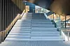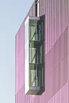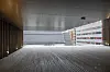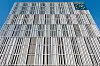 – Salen er plassert i byggets fjerde og femte etasje og er tilgjengelig via hovedtrappen. Men salen er også tilgjengelig via en egen heis fra sykkelgarasje til publikumsgalleriet i femte etasje. Denne heisen gir atkomst til byggets publikumsfunksjoner, men gir ikke adkomst til noen av de sikrede sonene i bygget. Det var svært utfordrende å detaljere modulfasaden med utenpåliggende lameller. Fasaden er utført i aluminium, men utvendig sjikt bak lamellene er glass – 50 prosent vinduer og 50 prosent klimavegg med utvendig sjikt i emaljert glass. Lamellene spenner modulens fulle høyde 3,8 meter og er festet inn i bunn og topp. Det var svært utfordrende å detaljere innfestingen slik at denne ikke ble synlig, og hvor mulighetene for innfesting var begrenset til tynne aluminiumsprofiler som holder glassene. Det var samtidig en ambisjon å skjule modulene i fasaden slik at denne ble oppfattet som en kontinuerlig flate. Vi var også usikre på lys og skyggeeffekten på fasaden. Vi hadde både digitale og fysiske modeller, men var avhengig av en fullskala modell av en del av fasaden. Det ble produsert en fullskala prøve på fasaden, sier Kleppan.