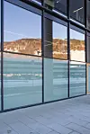 – Det er benyttet robuste, holdbare og naturlige materialer. Der hvor betong er benyttet i bærekonstruksjoner, er denne eksponert. Videre er ask benyttet i stor grad både på gulv og på vegger. Aluminium i fasade er benyttet på grunnlag av holdbarhetsvurderinger, men også fordi premisset for bygget var en prefabrikkert fasade både på grunn av byggets høyde, men også fordi bybanen passerer bygget. Bruk av stillas hadde vært lite hensiktsmessig og lite økonomisk i denne situasjonen. Bruken av aluminium i fasaden er også et resultat av det Bergenske klima hvor holdbarhet og fuktbestandighet er viktig. Hovedfasaden er utformet med vertikale lameller med ulike vinkler som ved vekslende vær og lysforhold endrer byggets karakter. Det var også viktig å gi fasaden et varmere uttrykk i kontrast til den mer kjølige aluminiumen. Inngangsdører på bakkeplan er utført i heltre ask som indikerer en annen materialbruk som videreføres i interiøret og spesielt i Vestlandssalen, sier Kleppan.