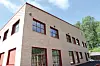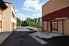Fasadene til skolen består av teglstein og røde aluminiumsbeslag, og fremstår nå som et videre uttrykk av den eksisterende skolen.