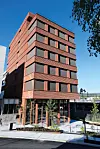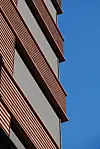 etasje er inntrukket, mens etasjene imellom stikker lenger ut.