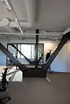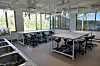 lærerarbeidsplasser i andre etasje, åpent læringsareal i tredje etasje og