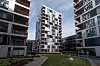 De to åtte etasjer høye lamellblokkene i byggetrinnet er kledd i tegl og treverk, og med teglstein på bakkeplan, tilsvarende resten av bygulvet. Det 15 etasjer høye frittstående høyhuset er i likhet med de andre boligtårnene kledd i tegl i de laveste etasjene og deretter i aluminium oppover i høyden. Balkongene har trekledning, og takene i hele prosjektet er beplantet med sedum.