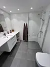 De har benyttet baderomskabiner i utbyggingen.