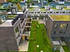 Takene er tekket med membran, og rundt 50 prosent av takene er beplantet med sedum. Noen av takene på de tre leilighetsbyggene har også private takterrasser, noe også rekkehusene har.