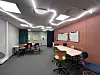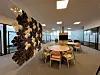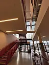 Det ble lagt ekstra ressurser i utformingen av førsteetasje for å tilpasse denne til formålet. Det er også kommet på plass en iøynefallende trapp som forbinder etasjene. I underetasjen og i første etasje har man også gått for slipte betonggulv.