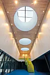 Innvending er det også gjort en rekke ulike grep for å gi bygget noen ekstra. Ikke minst handler det om store glassflater og naturlig lys gjennom bygningskroppen.