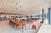 – Det er valgt mange gode løsninger og spennende farger i innredningen, med lyse trevarianter i kombinasjon med sterke farger, hvor grønt og blått går igjen, sier Langø.