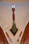 Den spesielle himlingen er støpt med hengende forskaling, ettersom vekten av betongen var for høy for stillasene som har stått inne i det ikoniske åpne atriet. Og det er ikke bare her entreprenøren har vært nødt til å levere på høye krav til utførelse. Hele bygget er preget av presise vinkler og flotte overflater.