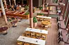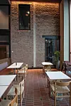 Terrazzogulvene i storsalen i første etasje er laget med knust granitt fra de gamle gulvhellene i bygget, knust porselen fra toaletter og vaskeservanter, knust teglstein og knust glass, alt fra det gamle bygget. I tillegg er gamle stålspiler gjenbrukt i nye gjerder, og gamle trappekonstruksjoner har fått nytt liv med ny stålkledning.