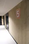 – Vi har bygd tradisjonell betongkjeller i ett plan. I første og andre etasje er det også brukt betong, men videre opp er alt av både dekker og bærende vegger av massivtre. Krav til lydisolering og brannsikkerhet gjør dessverre at alt treverket ikke er synlig. Mye av treet er kledd inn med gips og andre materialer, men i hver leilighet er det minst en synlig overflate i massivtre, sier han.