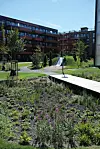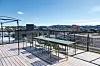 Alle leilighetene har egen balkong eller markterasse, og det er i tillegg bygd takterrasser på to av byggene med både fellesområder og private hageparseller.