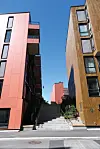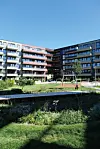 – De ulike fasadematerialene, både på vegger og balkonger, gjør likevel at byggene skiller seg ut. Det er brukt både brannimpregnert trepanel i to ulike farger, skjermtegl og to typer cembritplater med ulike farger, legger hun til.
