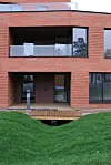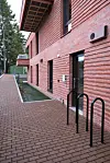 Rundt bygget er det etablert gangsti og grøntområder, og