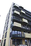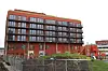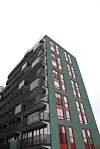 nord, som veksler i høyde mellom åtte og ti etasjer, og et volum på seks