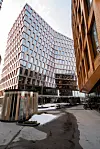 – Det er ikke akkurat en kjempestor tomt vi har hatt å bygge på, og vi har bare én innfartsvei her, så logistikk har vi måtte jobbe kontinuerlig med. Samtidig har vi hatt et ønske om å få inn første leietaker tidlig, så da har vi jobbet parallelt med å montere elementfasadene på nattestid. Det har vært viktig å ha god dialog med beboerne i området, spesielt med tanke på støyende arbeider og nattarbeider. Vi har også hatt 420 lastebiler med prefab og elementer som har kjørt inn til prosjektet, og vi har vært svært påpasselige med å ha personell i gaten, forteller Valholm.