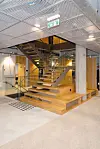 – Det er jo ikke et firkantet bygg, og vi har dermed hatt en spennende geometri å jobbe med. Vi har et stort åpent atrium som forbinder de nederste etasjene, og her er det også ekstra takhøyde, men aller størst takhøyde finner vi i øverste etasje, hvor det er seks meter under taket på det meste. Her er det også masse fasetter og vinkler. Det ser veldig kult ut, men det har vært en liten nøtt, sier prosjektlederen.