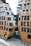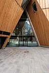 – Det er flere grunner til at bygget ser ut som det gjør. Det er krevende grunnforhold der. I tillegg er bygget designet som del av et naturlig ventilasjonskonsept, at vi åpner vinduer for å lufte i stedet for at luften blir kjørt rundt med vifter. Da trenger du at luften beveger seg, og for at luften skal bevege seg så trenger du flere vinkler og fasetter på bygget. Slik at du kan skape trykkforskjeller kun ved hjelp av geometri, sier seniorarkitekt Anne Cecilie Haug i Snøhetta i et intervju på prosjektets nettside.