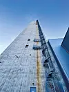 – Det er en effektiv måte å bygge på, men må planlegges godt. I alt jobbet 48 personer, fordelt på to skift, kontinuerlig i 69 døgn på glidestøpen. Deretter ble alle de 17 etasjene vinsjet ned fra toppen av tårnet med kran. Hver etasje er prefabrikkert, og vi brukte cirka fem måneder på å installere dem. Samtidig som vi ferdigstilte tårnet jobbet vi med strukturen i den lavere delen av bygget, sier han.