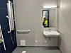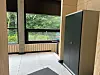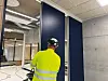 Anleggsleder Ståle Jacobsen demonstrerer den flyttbare veggen mellom trenings- og yogarommet over garderobene.