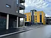 Hus 1 er i fem etasjer, mens Hus 3 har fire. Byggene har