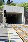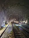 Første salve ble sprengt i november 2014. Gjennomboring skjedde 29. august 2017, og første tog kjørte gjennom tunnelen 12. desember 2020. Det tar sju minutter å kjøre gjennom tunnelen. Overdekningen er 600 meter på det meste.