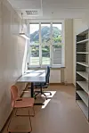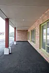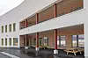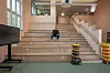 – Tilbygget viderefører både materialbruk og farger i eksteriøret. Selv om tilbygget er konstruert med trekontruksjoner, er fasaden forblendet med tegl og pussplater. Inntrukne partier har kledning med frilagt tegl. Vindu- og dørfarger er lik for hele anlegget. Idrettshallen har også puss og frilagt tegl, og samme farge som skoleanlegget. Farge og materialbruk binder sammen bygningskomplekset. I interiøret er det valgt å understreke nytt og gammelt ved å benytte forskjellige materialer og farger. Hovedforskjellen er at 1952-byggets mur-karakter beholdes i interiøret, med malte flater i varme farger. Tilbyggets interiør er derimot basert på å ta fram trematerialer, noe som er mest synlig i vestibylen, sier Bech.