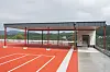På idrettshallens østside er det cirka 12 biloppstillingsplasser.