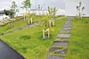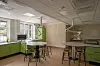 – Ved å legge bygningene parallelt med hovedfløyen i 1952-bygget, samt aktivt utnytte terrengforskjeller, mener vi at løsningen ble god. En annen utfordring var å transformere interiøret i 1952-bygget til å bli funksjonelt og samtidig ivareta struktur og karakter. Det ble for eksempel løst med at den gamle gymsalen er blitt et flott og luftig biblioteks- og fellesområde. Foruten kunst i interiør (vestibyle, bibliotek) er det to utvendige verk, utført på fasader. Det mest synlige er kromatisk grønnmønstret innslag på idrettshallens høye fasade, utført av Kiyoshi Yamamoto, sier Bech.