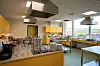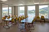 – Tilbyggets utforming er enkel, og har samtidig en arkitektonisk frihet. Tilbygg og 1952-bygget er forbundet med et mellombygg med hovedinngang og en luftig vestibyle. Kantine og vestibyle blir det naturlige knutepunktet i bygget, omkranset av eksisterende fløy på sørøst side og nybyggets fløy på nordvest side. Vestibylen strekker seg over tre etasjer og har godt utsyn mot Eidsvågen med båthavnen i nordøst, og god kontakt med ankomst og lekeområde på sørvest siden. Rommet blir skolens møtested med varierte sitteplasser som ønsker både elever, ansatte og besøkende velkommen. Idrettsbygget er plassert inn i terrenget og utformet med en avtrapping som reduserer høydevirkningen. Det er overdekket, utvendig, forbindelse mellom skole og idrettshall, sier Bech.