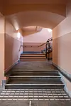 1952-bygget sitt opprinnelige eksteriør er gjenskapt med farger, og med veksling mellom pussflater og slemmet tegl, noe som er resultat av samarbeid med byantikvaren i Bergen. Det er også innslag av frilagt tegl i dette bygget.