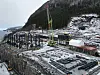 betongkonstruksjoner for å lede malm fra en 220 meter høy vertikalsjakt og inn