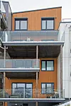 Alle leilighetene har egne terrasser eller balkonger. Leilighetene i øverste etasje har takterrasser (den største er på 96 kvadratmeter). I andre etasje er det en stor, felles takterrasse.