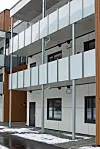 Fasadematerialer er valgt ut fra enkelt vedlikehold og lang levetid. Av samme grunner har bygget aluminiumsvinduer. Bygget har to trapperom og to heiser (båreheis), med inngang fra øst. Det er akustiske flåter i himlinger i trapperom. Både leiligheter, fellesareal, svalganger og balkonger er sprinklet.