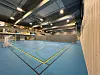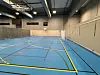 Selve flerbrukshallen, med håndballbane og tilhørende